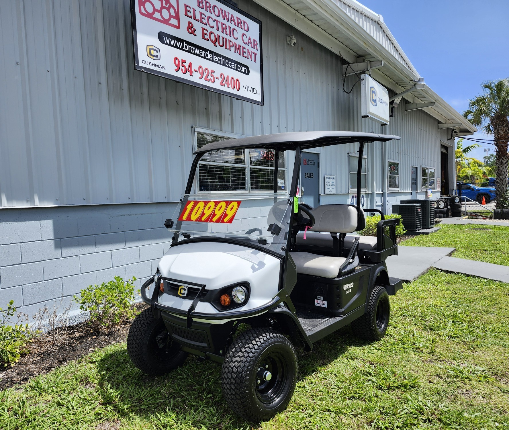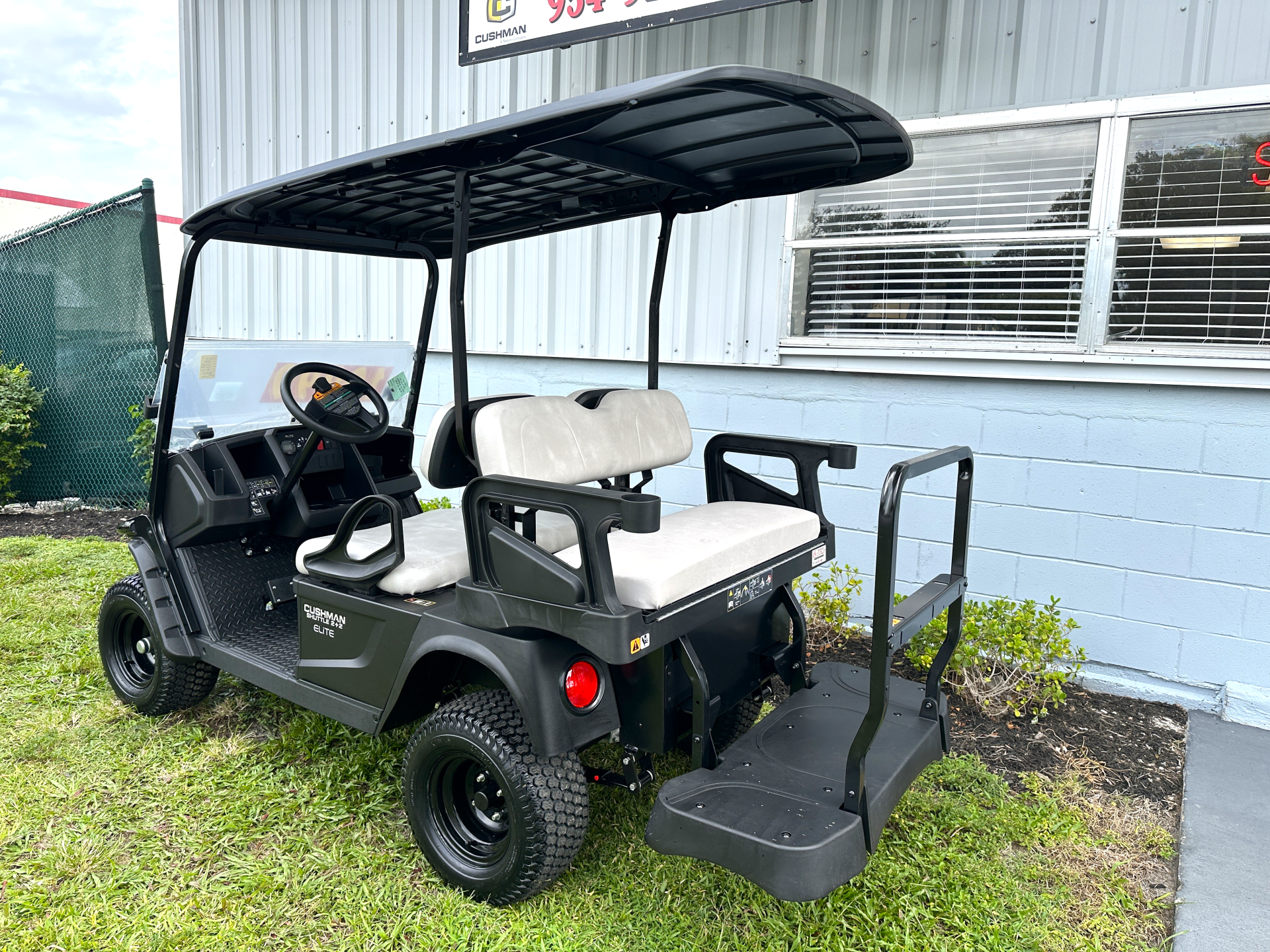 CUSHMAN 2026 SHUTTLE 2+2 ELITE 2.2 LIFTED MODEL #10002814 NEW Features: Batteries: Single Pack Lithium Li-Ion 56.7 V., reverse warning, speed controller: 300A. AC, charger: world elite, lights: halogen head, horn, SOC meter, DC-DC Converter, frame: welded steel w/pc, suspension front & rear: leaf spring w/shock, brakes: rear mechanical drum & auto park brake, RFS rear facing fold down seat, tires: K500 20×8-10 turf design w/black steel, seat cap: 4/P, speed: 16.5 mph +/- .5, FACTORY LIMITED WARRANTY: 2 Years Parts & Labor, Lithium Battery 5 Years