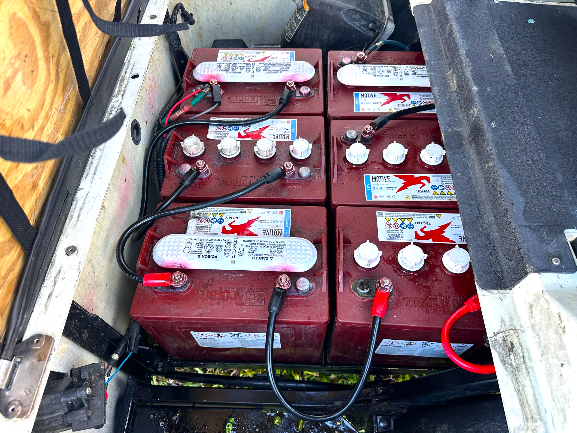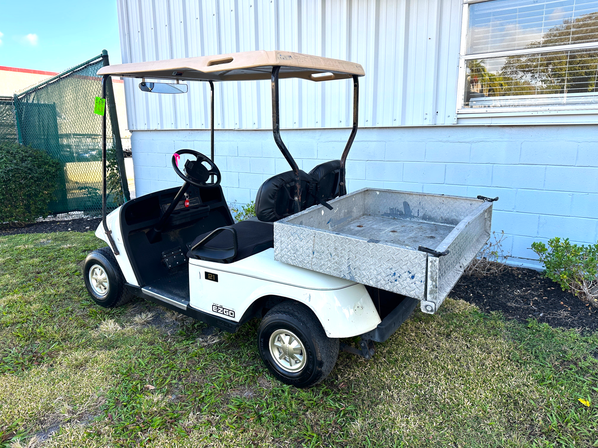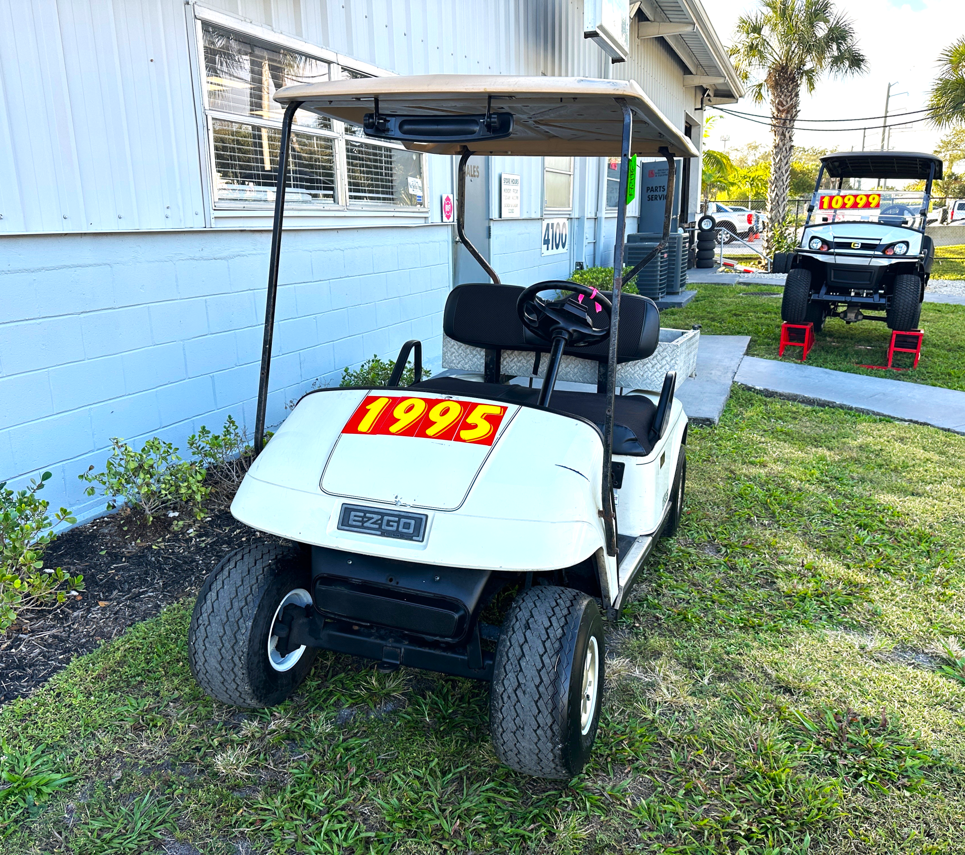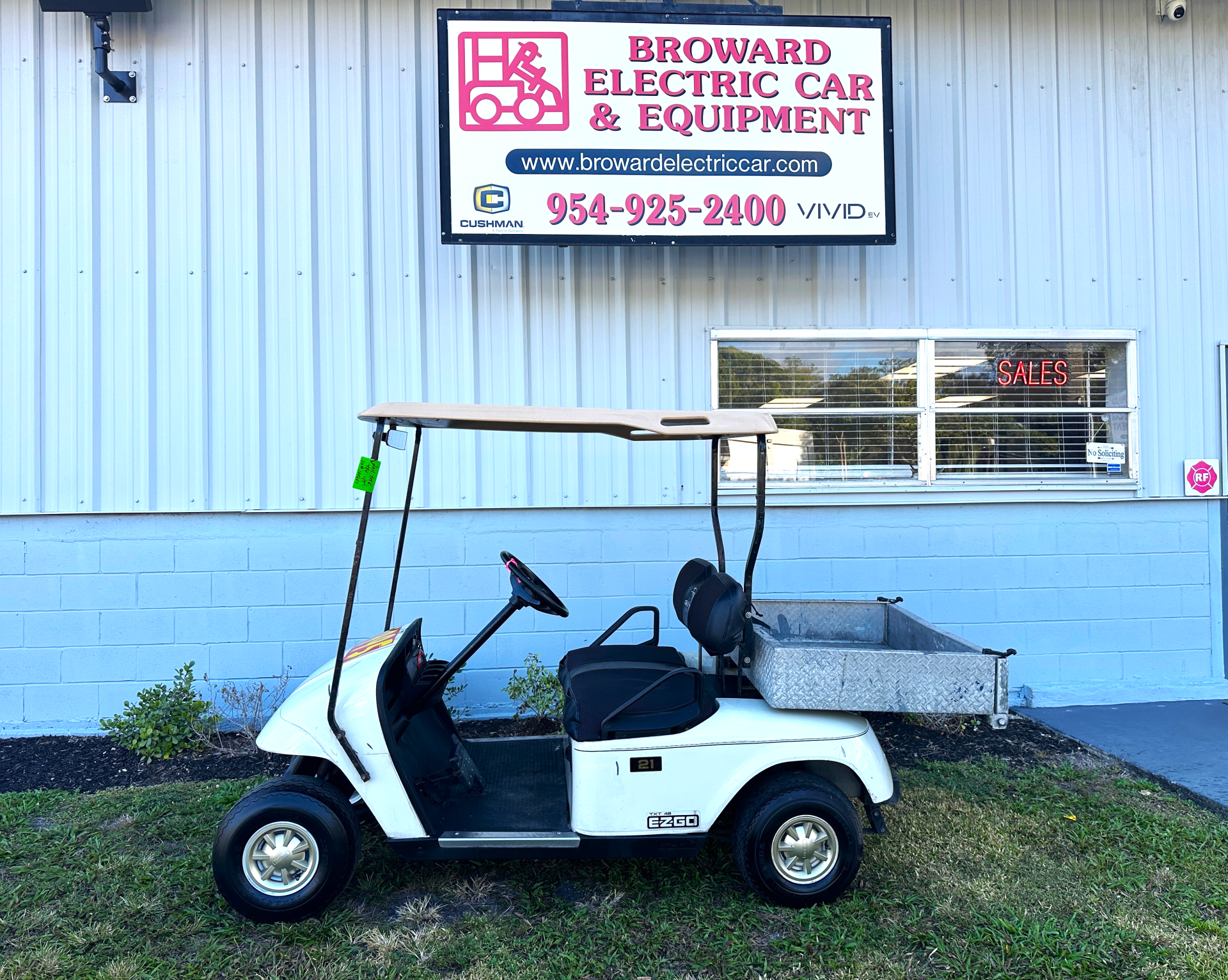 EZGO 2011 TXT 48V USED UTILITY Features motor 48 Volt DC Unit, 250A SS speed controller reverse warning indicator, 18 x 8.50 x 8″ USED tires, 48V electrical system, 6-8V Batteries USED, 48V USED charger, Std Sun Top TAN, Std. Speed 12-14 mph. Body Color: IVORY, Seat Color: BLACK Vehicle Offered in Operating Condition, AS-IS NO WARRANTY
