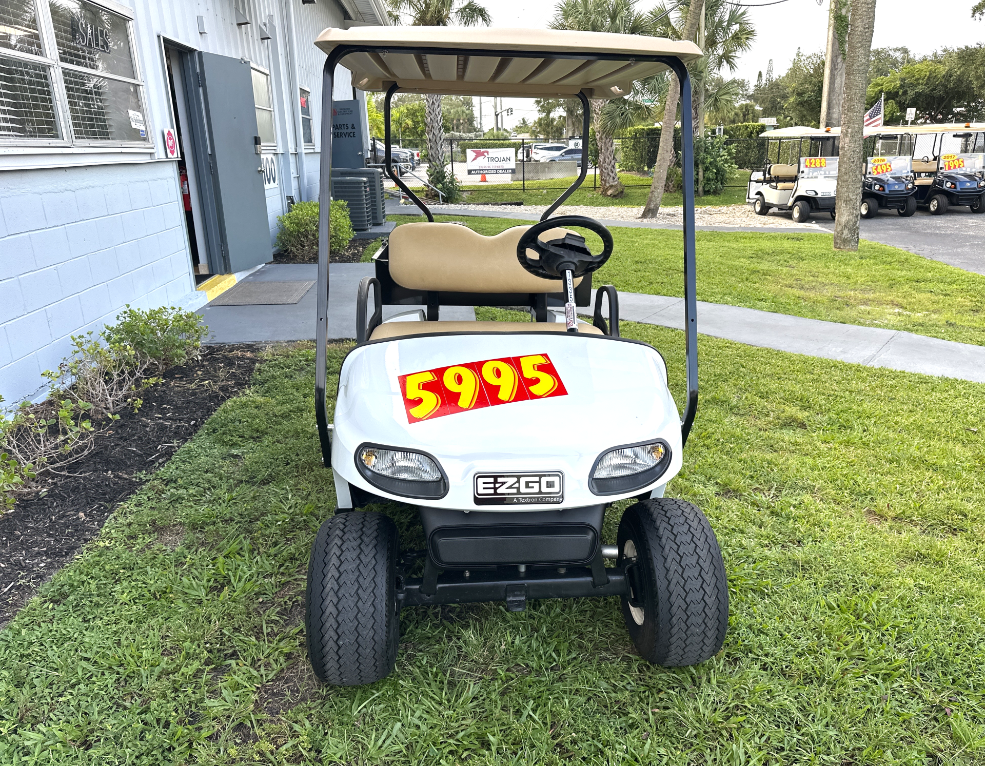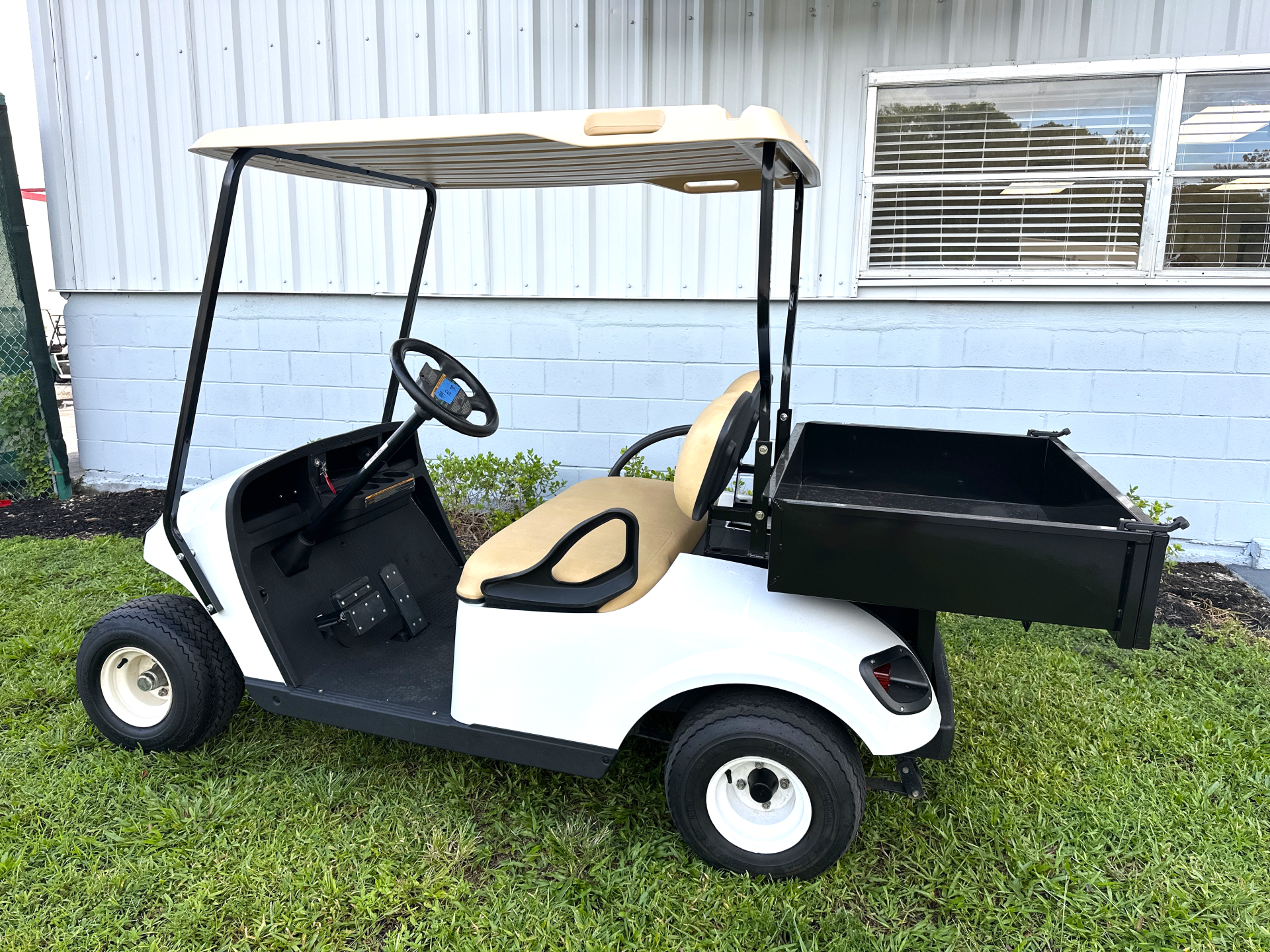 EZGO 2020 TXT Freedom 48V USED REFURBISHED UTILITY Features: motor 48 Volt DC Unit, 250A SS speed controller, , anti-roll back, batteries: 6- 8V used, charger: 48V, override switch for towing & maintenance, Lights: head-tail-brake, horn, SOC meter, front & rear suspension: leaf spring w/shocks, brakes: rear mechanical drum, frame: steel w/p.c. molded body, tires 18X8.50X8 used street design Seating cap 2/P, Speed 14.5mph +/- 0.5. Vehicle Color: White, Seat: Tan. BEC LIMITED WARRANTY: 90- Day Parts and Labor