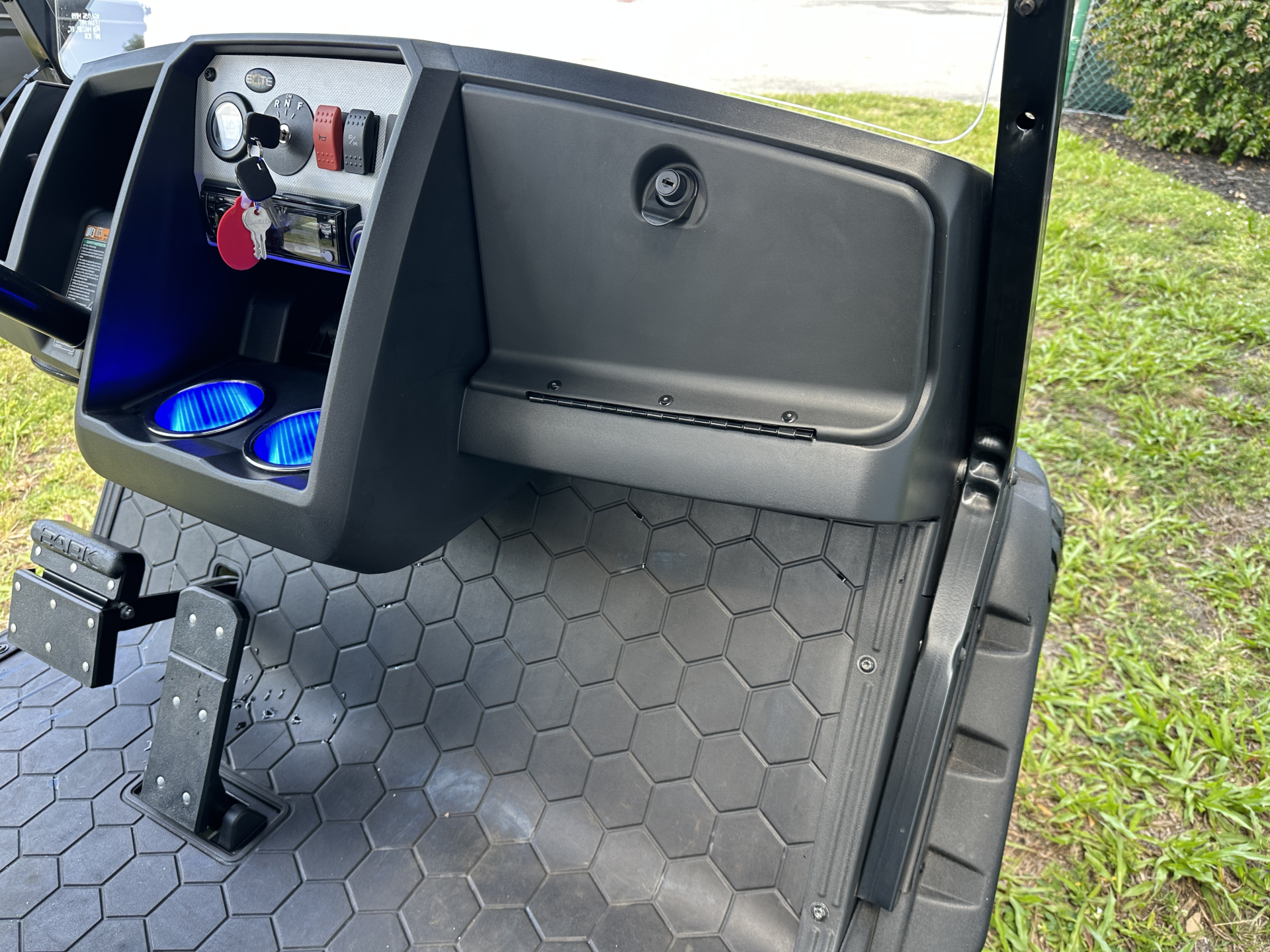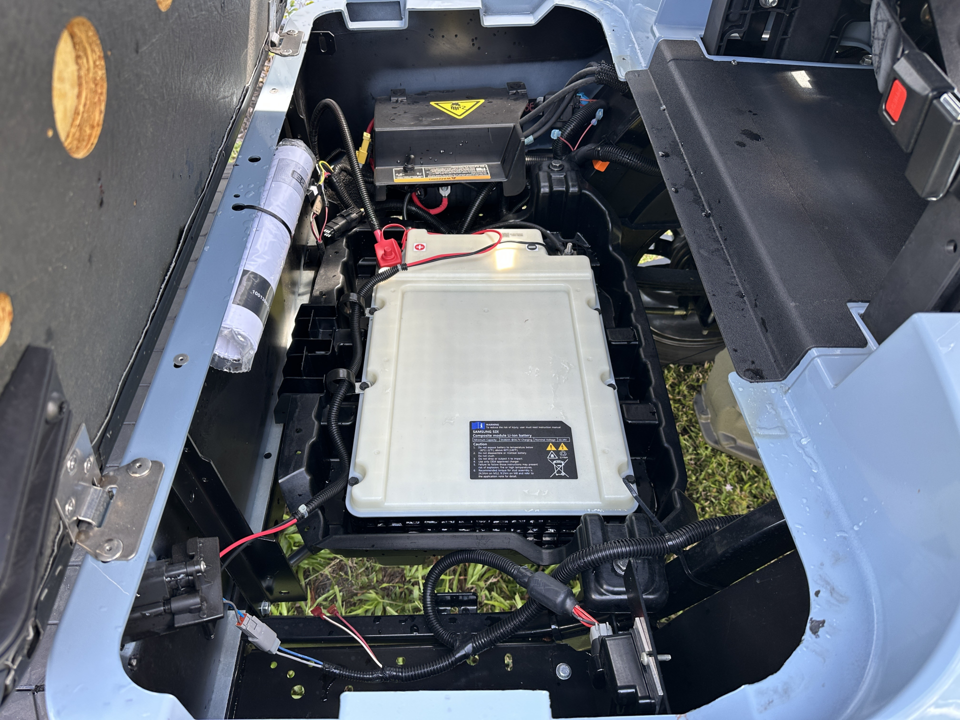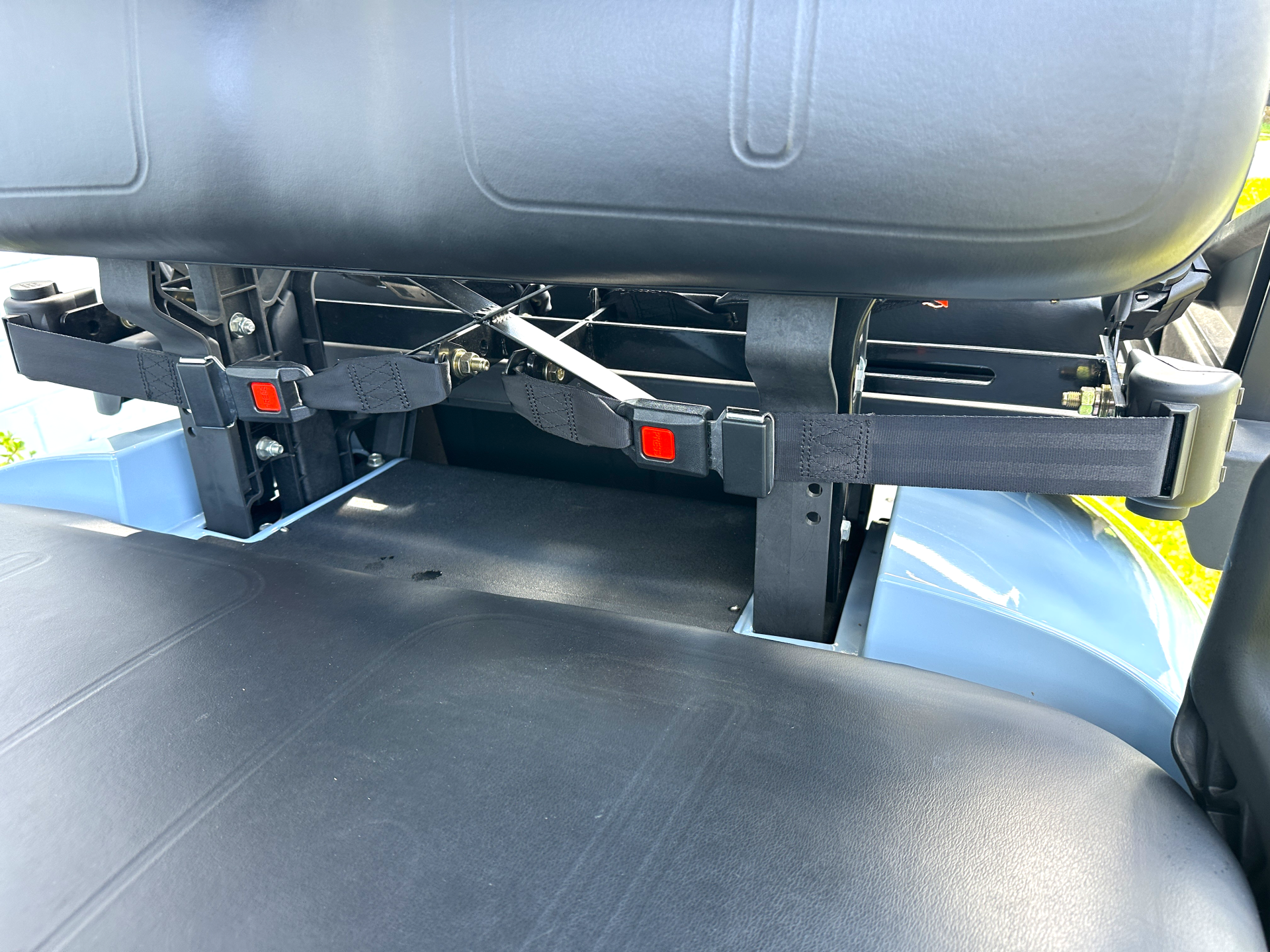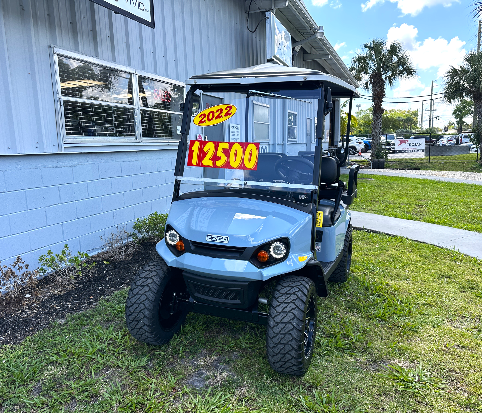 EZGO 2022 EXPRESS S4 ELECTRIC ELITE 2.0 MODEL #10027213 USED, Features: 56V. DC, Batteries: TWO Lithium Ion 56V. 60AH, charger: world elite, speed controller: 235 Amp AC, reverse warning, LED lights: Head-Tail-Brake, Horn, Hour Meter & SOC, USB port, DC-DC converter, suspension front & rear: leaf spring w/shock, brakes: rear mechanical drum, tires: 23×10-14 MT paramount radial, frame: welded steel w/pc, Seating Cap: 4/P w/plastic folding rear seat/cargo, speed: 19.5 mph +/- 0.5mph. Body Color: OCEAN GRAY Seat Color: BLACKREMAINING FACTORY LIMITED LITHIUM BATTERY WARRANTY: 4YR.
